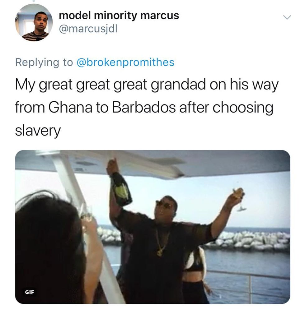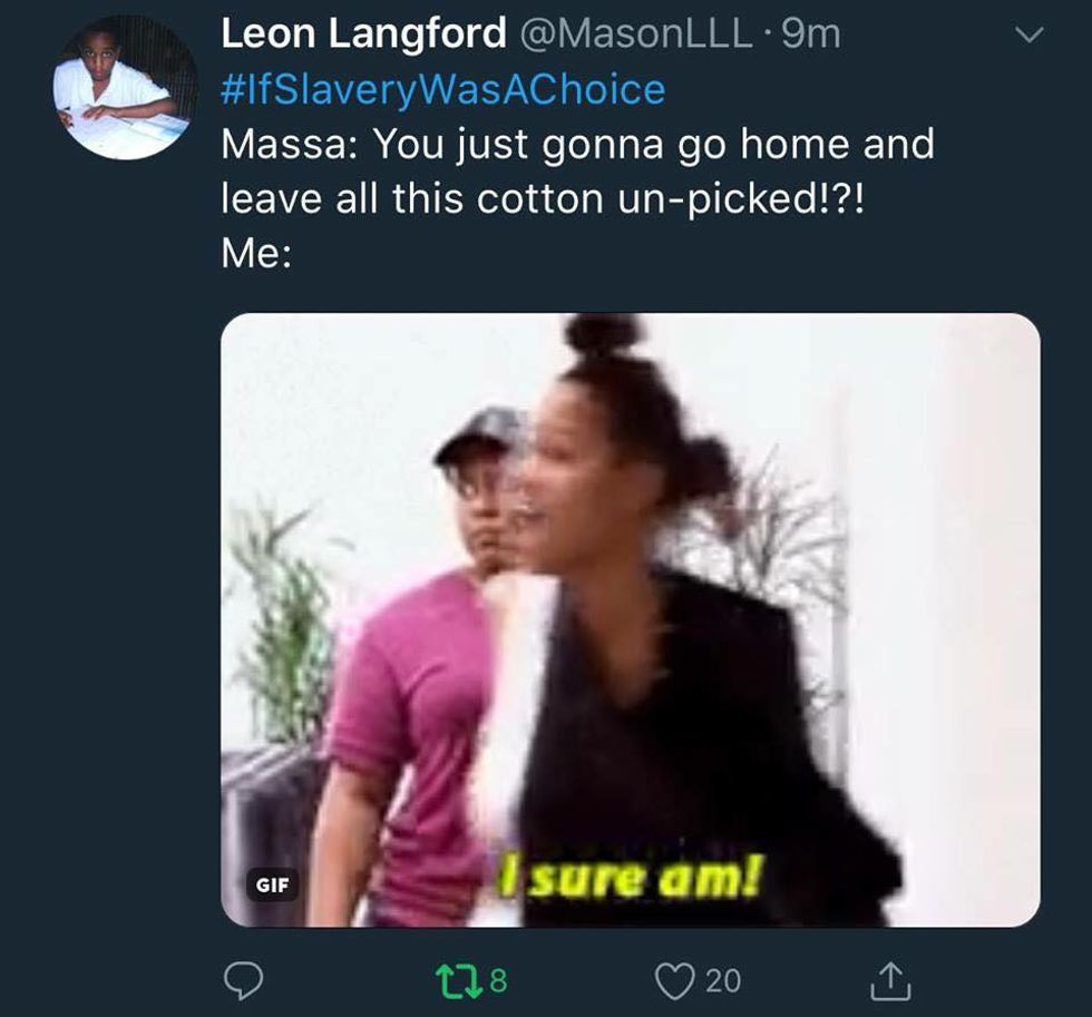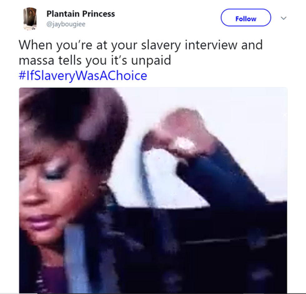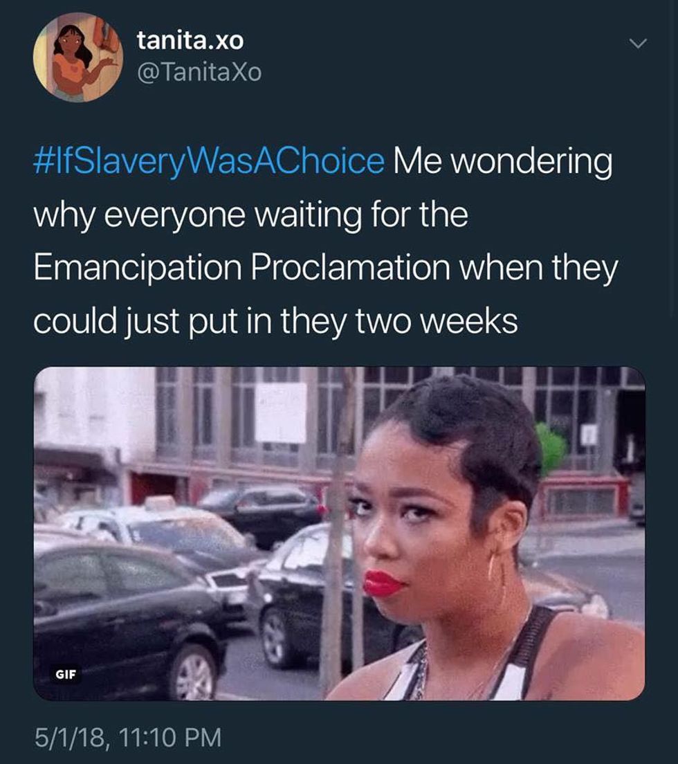 In a recent interview with TMZ, Kanye West said what is probably the most insane thing to ever come out of his mouth. Ignoring 400 years of historically accurate information he has concluded that “Slavery was a choice.” Black America was not having it. Open letters to the rapper began flooding social media within hours of the interview, and black twitter exploded with the sarcastic hashtag #IfSlaveryWasAChoice. In usual twitter fashion, these tweets humorously point out the flaws in West's logic. Explaining exactly why West’s comments seem to have been pulled directly from his rear end: