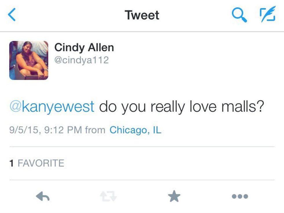 Kanye has alluded to his love for the mall on numerous occasions. Most recently in his song “All Day” in which a call and response lyric requires him to explain just how much time he spent at the mall. You guessed it. All day.