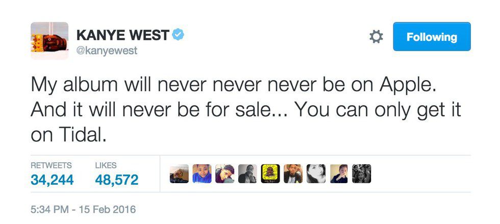 Kanye West released his album via download and stream on Tidal, then changed his mind and removed the download option. He sparked even more controversy with this tweet.