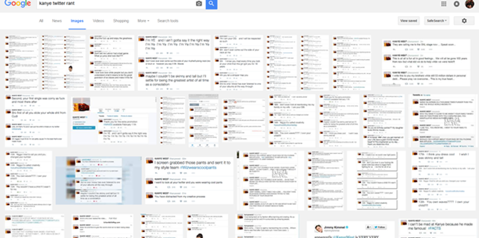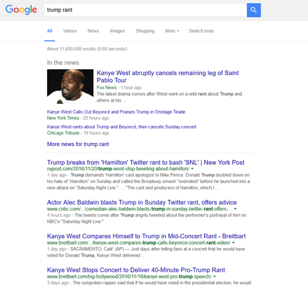 Then there's Kanye West. His Twitter rants and rants at his concerts are probably worse than Trump's. If you google "Trump rant", this is what comes up.