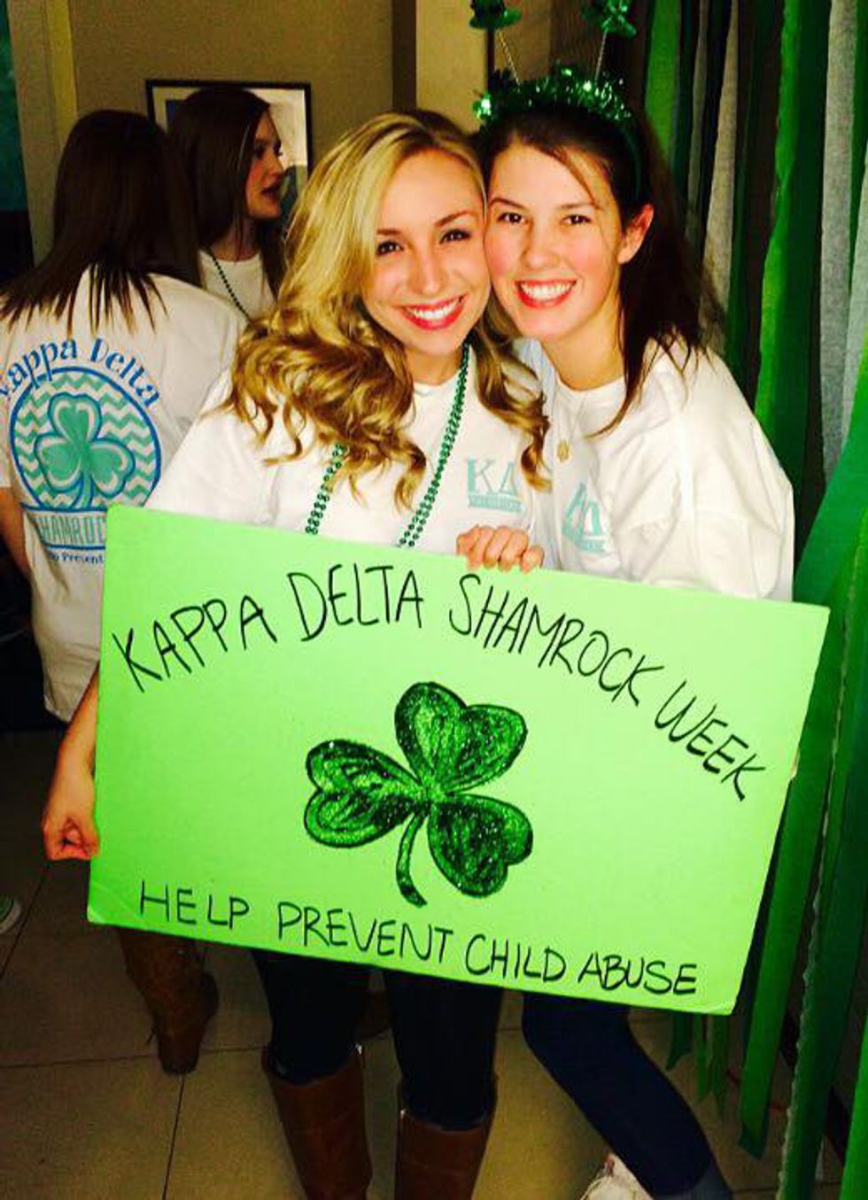 "Shamrock Week represents Kappa Delta in many ways," said freshman Jessica Blankinship, who is the Kapture KD chair. "It's our biggest philanthropy event to bring awareness to Prevent Child Abuse America, not only to the Kappa Delta's and Greek life, but to the entire community as well."