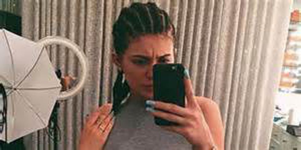Kylie Jenner (first photo pictured above) and Kim Kardashian (second photo pictured above) in the above photos are wearing a hairstyle that has long been termed as "corn rows." Once the Kardashian women started sporting this style, the media had released it as a new hairstyle, calling it "boxer braids." The two young Kardashian women were not culture appropriating, but appreciating a style and sporting one coined and known in the black community. By the media creating a new name for the style, they took credit from its original source, being the black community, and put the credit into the Kardashian sisters.