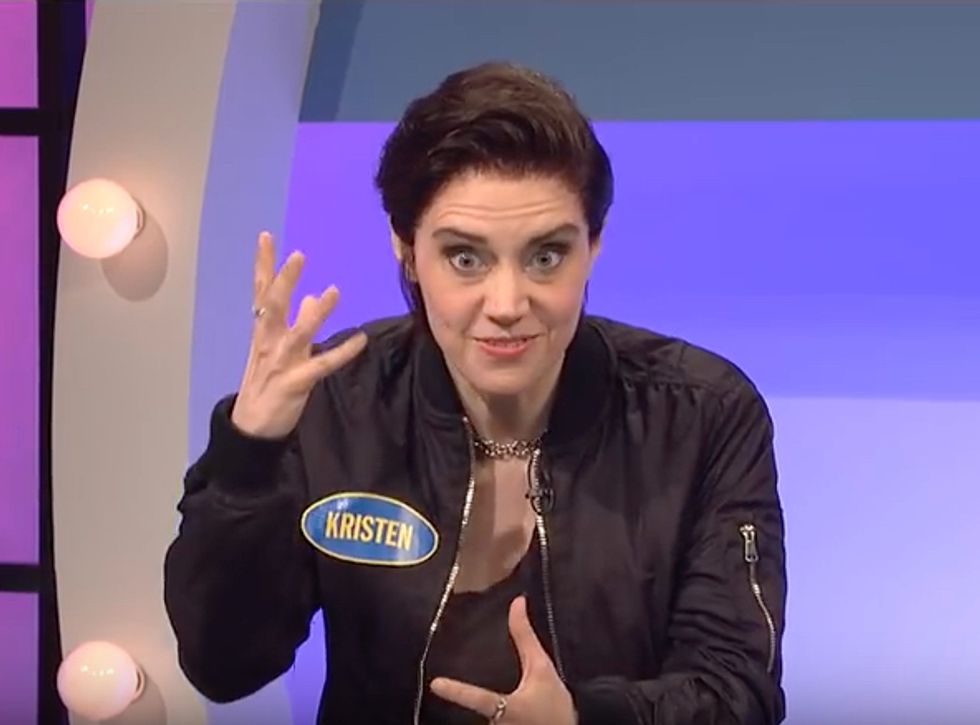 Kate McKinnon recently impersonated actress Kristen Stewart in a segment called "Celebrity Family Feud" on Saturday Night Live. Much like the actual television show of the same name, the skit mimics the game show in a more comedic fashion, in which Kenan Thompson plays the role of Steve Harvey and various SNL cast members and guest stars play an array of celebrities. Although McKinnon did not have many lines, she was able to capture the essence of Stewart, a personality which is perhaps more accurately portrayed by coherently saying as little as possible. McKinnon managed to emphasize and dramatize Stewart's often hesitant and scattered way of speaking, appearing consistently frazzled and caught off guard. The comedienne conveyed this by echoing Stewart's notorious gasps of disbelief, which always make it seem as if she has never been prepared to answer any question thrown at her, no matter how simple. While I do admire Kristen Stewart as a person and an actress, I was thrilled by McKinnon's performance, which effectively exaggerated Stewart's extremely noticeable quirks.