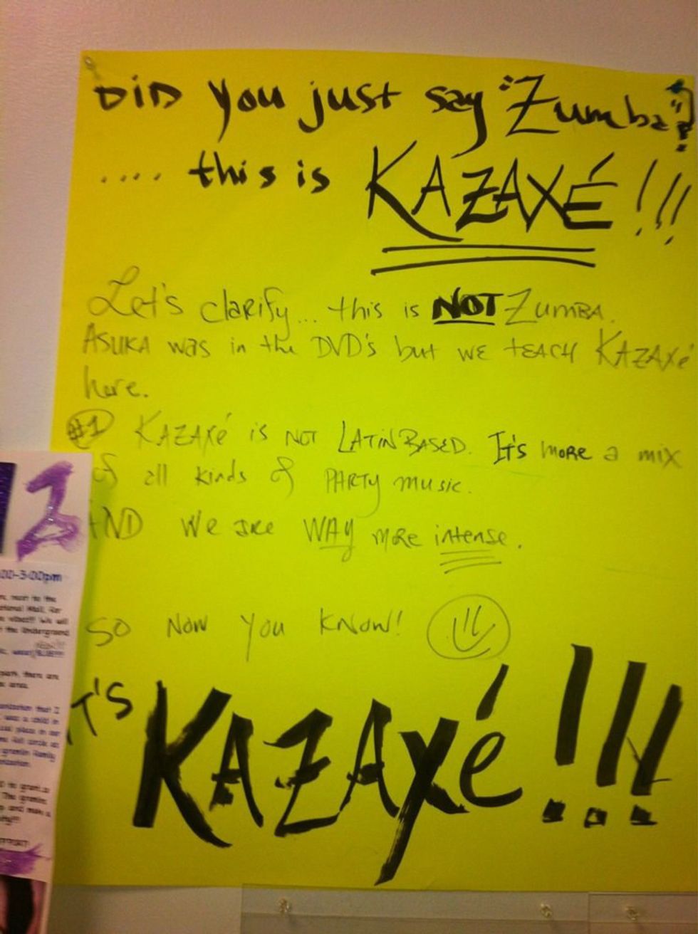 First and foremost, you're all probably wondering "what the heck is Kazaxe!?" and "how do you pronounce it?" Kazaxe, pronounced kah-zah-shey, is a high intensity work-out program centered in Springfield, VA. Much like zumba, Kazaxe uses the unique and fast-pace music, many of which come from the Caribbean/Central America. However, Kazaxe is much less uniform and controlled and there is a lot more bodying rolling, booty popping and hip movement. The intensity and dance-moves are derived from the Latin, Caribbean and African roots of the songs that are played in the studio. Kazaxe founder, Azuka, has managed to create this amazing atmosphere of fun and carefree activity. You don't feel like you're working out and if you do start to feel it you don't want to stop because you're having so much fun.