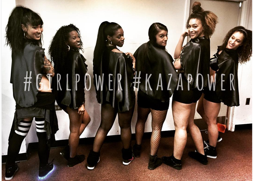 Kazaxe is booty shaking, hip popping fun that started in the basement of Azuka's house. Word traveled about her ultra fun work-party and her program steadily grew. Now, based in a boxing warehouse, Azuka makes it clear that she is here with you, having fun and doing every move with you and she's intent on making it the biggest party you've ever worked out in. She likes loud music, bright lights and neon colors. She's assembled a team of outstanding individuals who share her passion of movement fitness and fun. No one is discriminated against for size, shape, color or dancing skill. Azuka invites regular class attendees and people who are having fun to come up on stage with her and assist with teaching dances. The first time I ever went to her class I smiled so hard because I was nervous. I didn’t want to be judged for messing up or looking stupid but everyone on that stage was having the time of their lives. They didn’t care how they looked, or if they messed up. They didn’t even care if they were on beat. I let loose and danced my butt off and I have never had so much fun working out.