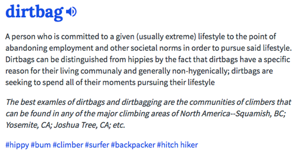 I personally choose to follow the example of Yvon Chounaird. Among many things, he is an elite athlete, philosopher, conservationist, husband, father, dirtbag (see definition below), inventor, and businessman (though he is reluctant to even use the term businessman). He's been on adventures all around the world, climbing, skiing, surfing, kayaking, trekking, you name it.