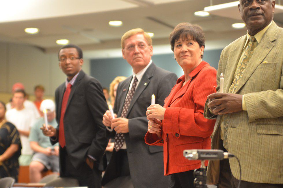College of Charleston Student Body President Zachary Sturman spoke at the event to represent the student body, and called his classmates to action by exhibiting an infectious passion for our city and school. He wanted his fellow students to feel compelled to contribute to the conversation about the lives lost in the Charleston massacre, in order to ensure their lives won’t soon be forgotten. The end of his speech summed up his fervor succinctly: “The flames of passion have erupted in our veins. We will not let the fire die down. We will not let the [Charleston 9] down. We will set the world on fire. We are Charleston strong.”