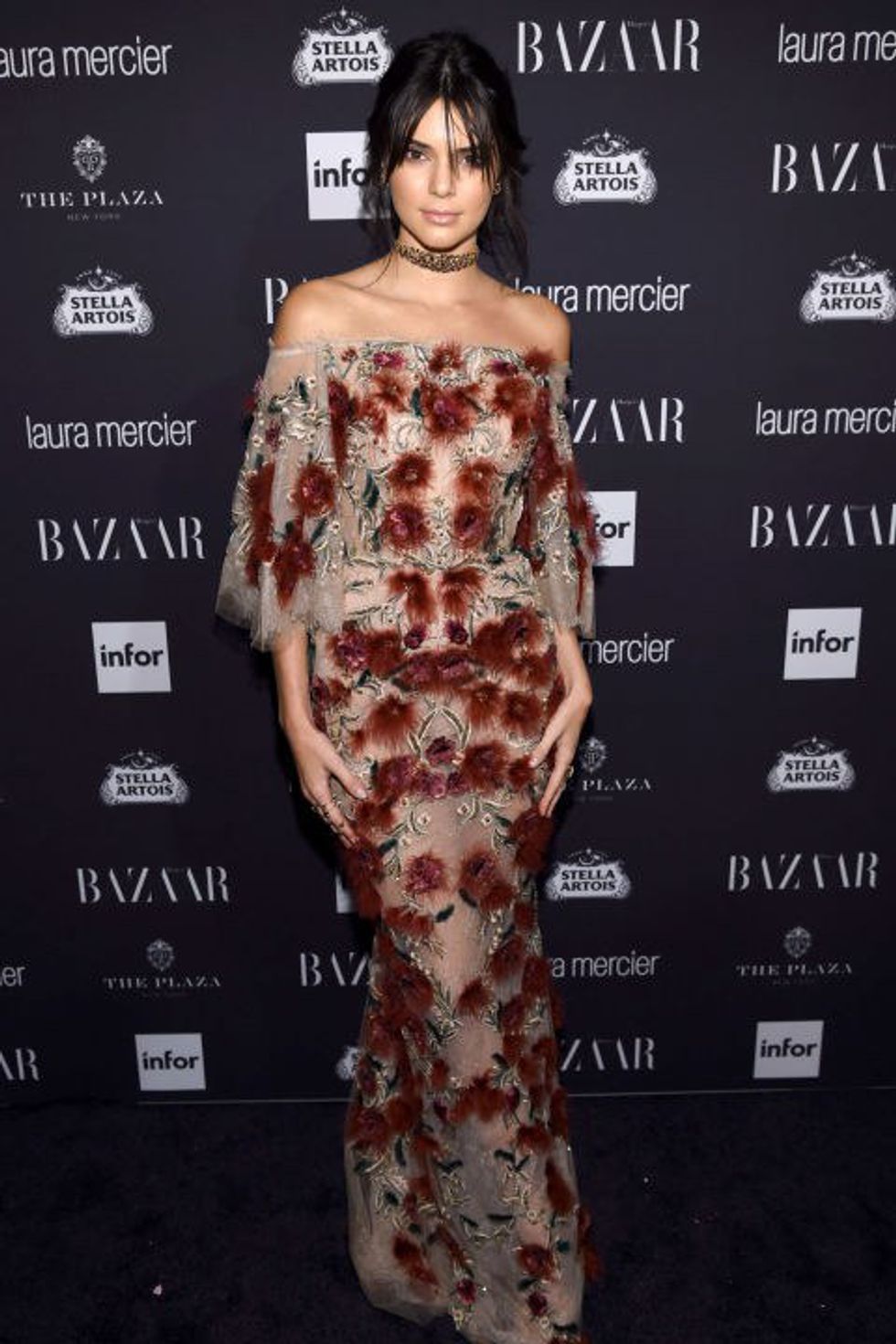 While we are focusing on the Harper’s Bazaar party, I have to mention the willowy runway star, Ms. Kendall Jenner. The supermodel who recently topped out at number four in Forbes’ list of 2016’s highest-paid models, had us star struck. She posed for the cameras in a sheer Marchesa gown and bold bangs. Kendall topped off the elegant look with a neutral choker.
