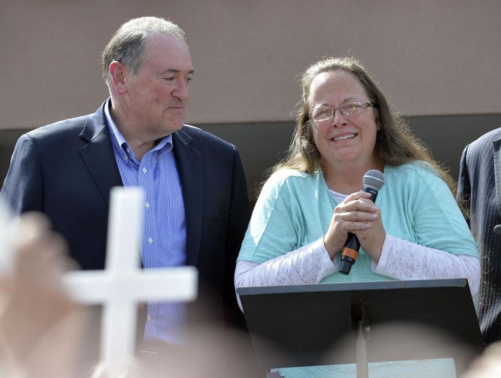 In early September, presidential candidate Mike Huckabee even came to Kentucky for an "#ImWithKim Liberty Rally" outside the Grayson prison where Davis was held for five days. Huckabee also added an official petition to his campaign website.