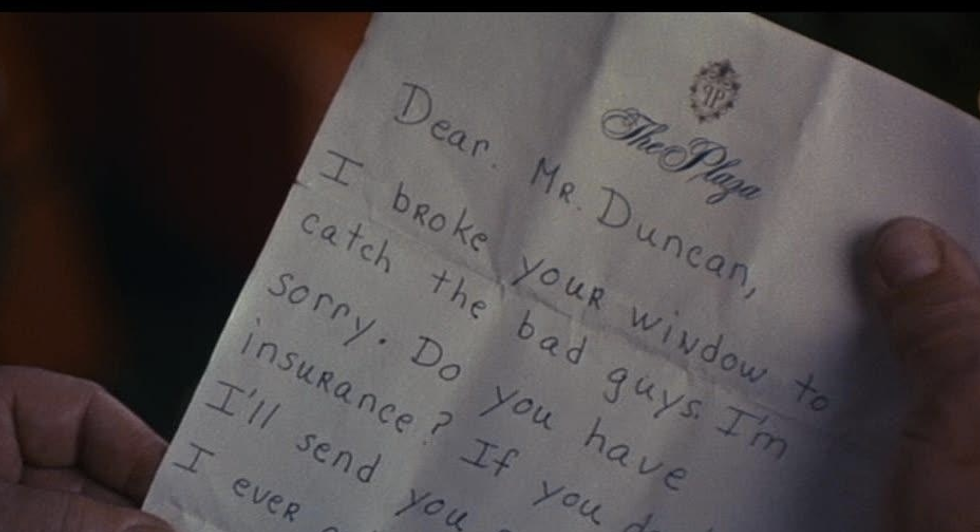 1. He uses his dad's recorder to trick the hotel staff into letting him rent a room.