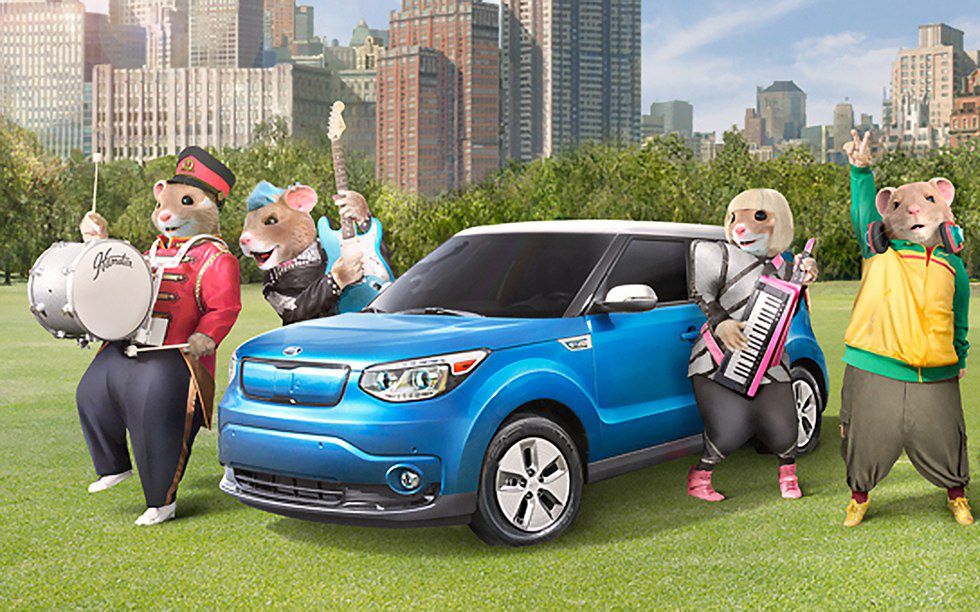 Pictured above are the famous "Kia Soul hamsters" playing music and dancing in a Kia commercial.