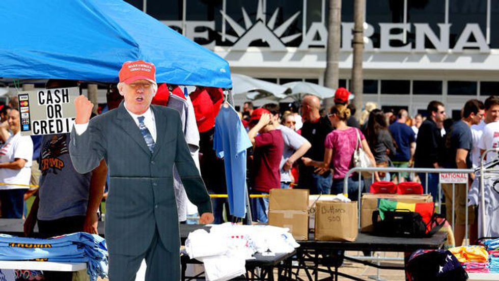 This is a real Donald Trump cutout that was set out among the merchandise tents -- I couldn't make this up if I wanted to.