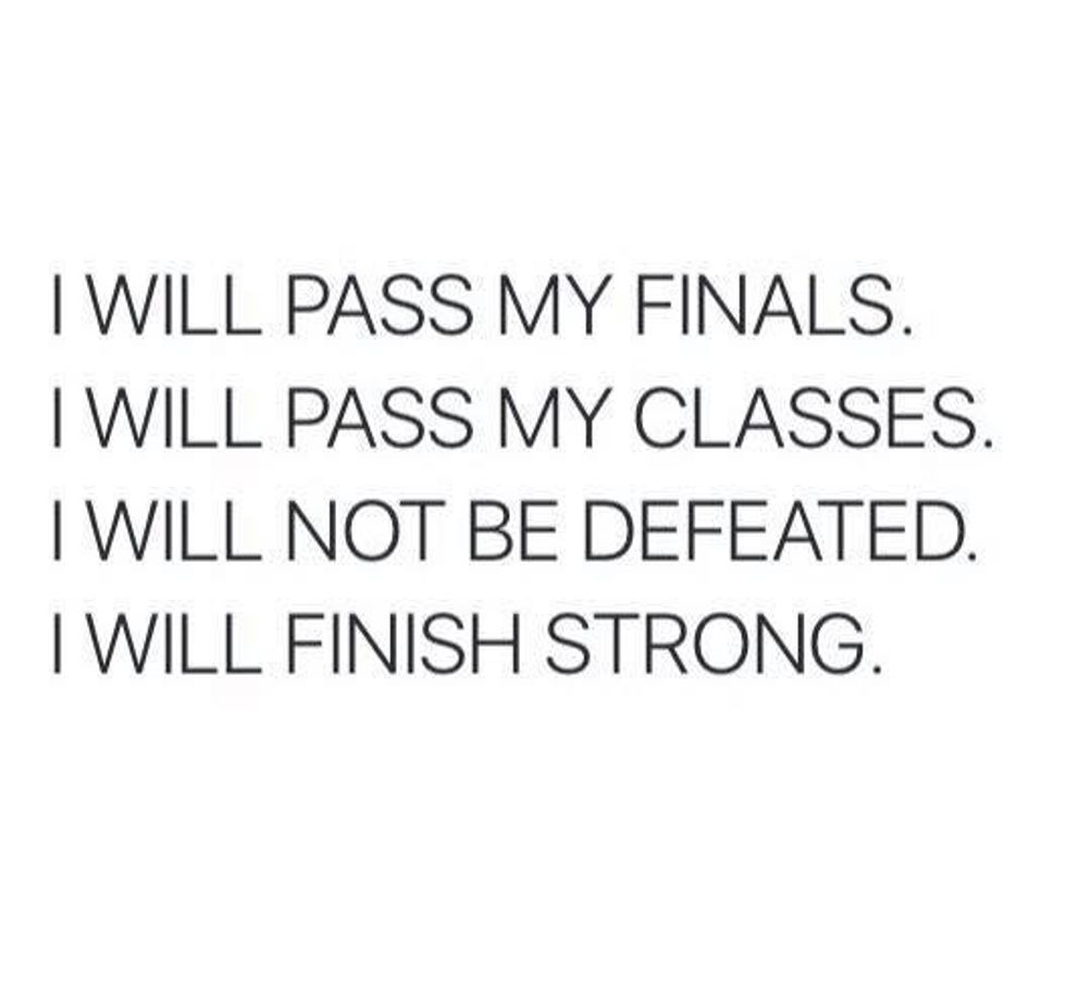 It's time that we start destroying those finals and show them and the professor what's up. Yeah, I may have made bad grades on my other tests, but I am determined.