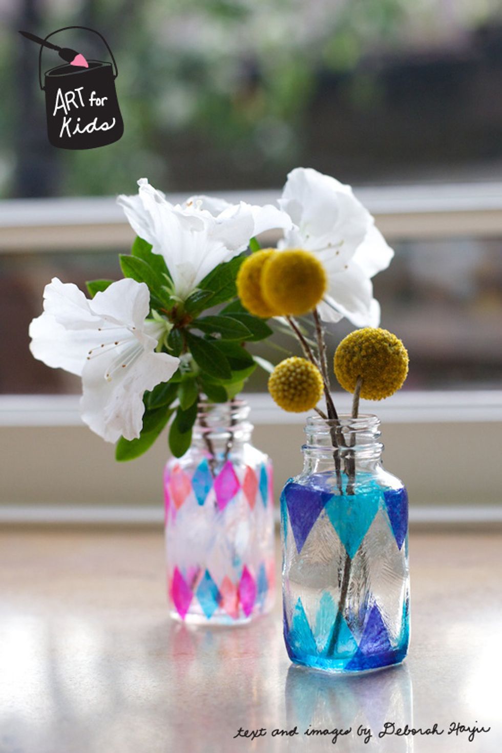 This is another mod podge activity and all you need is mod podge, tissue paper, and some glass jar/bottle/vase!