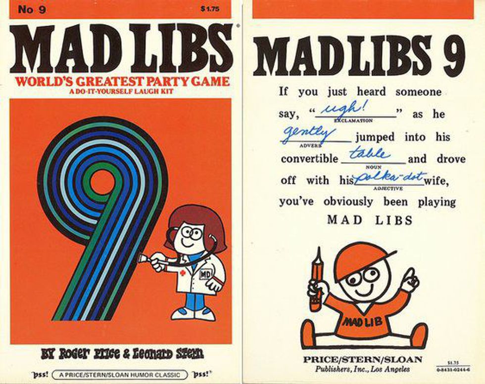 Whether it was a long car ride or just with friends, Mad Libs were what us 90’s kids did with friends in our free time. However, sometimes our parents would tell us to do a Mad Lib to help with our vocabulary, to build on nouns, or adjectives for this is what the game type book helps with and is also based on.