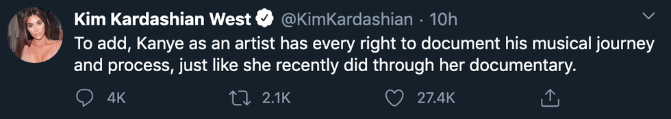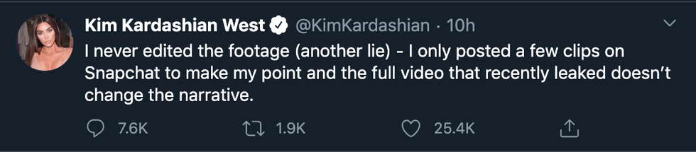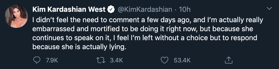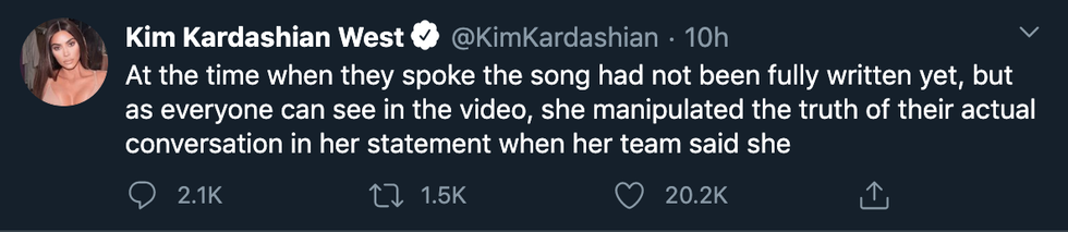 Several hours after Taylor posted her Instagram story, Kim K decided to head to Twitter to stand up for her man because apparently he's incapable of handling that himself.