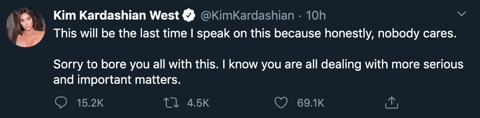 Kim tried to call Taylor selfish for causing drama while people are suffering right now. This response proves that Kim clearly didn't read the Instagram story to see Taylor's motive behind it.