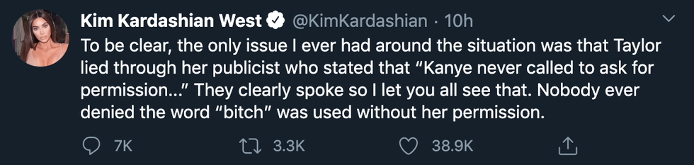Kim directly called out Taylor for lying and tried to explain away her half of the story then calling out Taylor for lying through her publicist. To which Taylor's publicist, Tree Paine, responded: