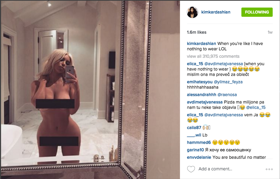 Kim Kardashian is famous for being famous. While her original claim to fame was a sex tape, it has been 13 years since it was made and now she's richer and more famous than ever. Due to her fashion taste, modeling work, reality TV show, and marriage to rapper Kanye West, Kim Kardashian is now a household name in 2016. Recently, she has been the butt end (no pun intended) of much criticism over the nude selfies that she has posted to Instagram. This criticism only highlights the rape culture that we live in.