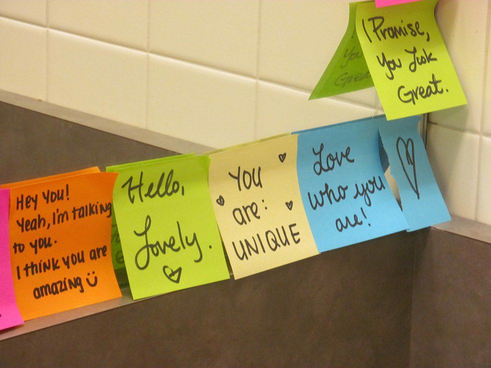 Leave sticky notes with positive messages on them on mirrors, reminding them how beautiful they are. Remind them that they’re gorgeous! That their smile is dazzling!