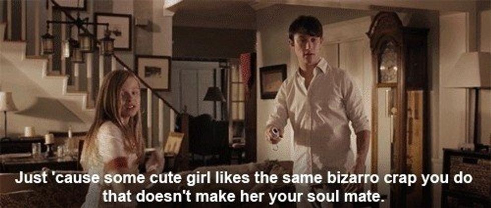 No one says it better than Chloë Grace Moretz’s character in (500) Days ofSummer: “Just because she likes the same bizzaro crap you do doesn't mean she's your soul mate.” If a girl or a guy enjoys the same music, movie genre, or obscure books as you, that’s great. But it doesn’t make that person your soul mate. Maybe they are, or maybe they’re just a cool person you should be friends with. Don’t be like Tom Hansen.