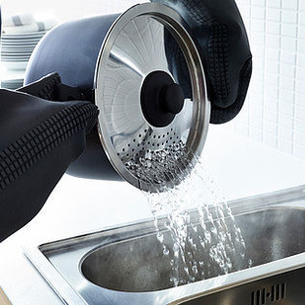 I cannot tell you how many times I've accidentally dropped pasta in the sink because I didn't strain it properly. Sure, I may lack hand-eye coordination at times, but none of that matters when you've got your very own pasta strainer built into the lid!