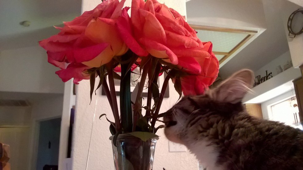 As Amatta moved off my side I re-positioned with my arm under two pillows, my head on top, laying on my side more comfortably. It was here the worst happened. I unintentionally created a crevice the right size for two feline paws and a head. She stuck her head under jaw and started purring, tickling my chest with her whiskers. While the whiskers were awful, her paws had a true magical abuse to them. Amatta stuck those fiendish feet of hers into my armpit and started kneading. I tried to hold out and prayed to God that she would simply stop; she never did. I would turn over and she would slide right back that glorious and evil spot she had found in the natural shape of my sleeping pattern. Later she lessened her evil for quicker, more disruptive behaviors. Amatta would crawl in front of my face, but it was dark so I could barely tell she was there till she would tickle my arm or a check with her whiskers and I breathed her breath. I flinched, realized what happened and then my resolve was reinforced.