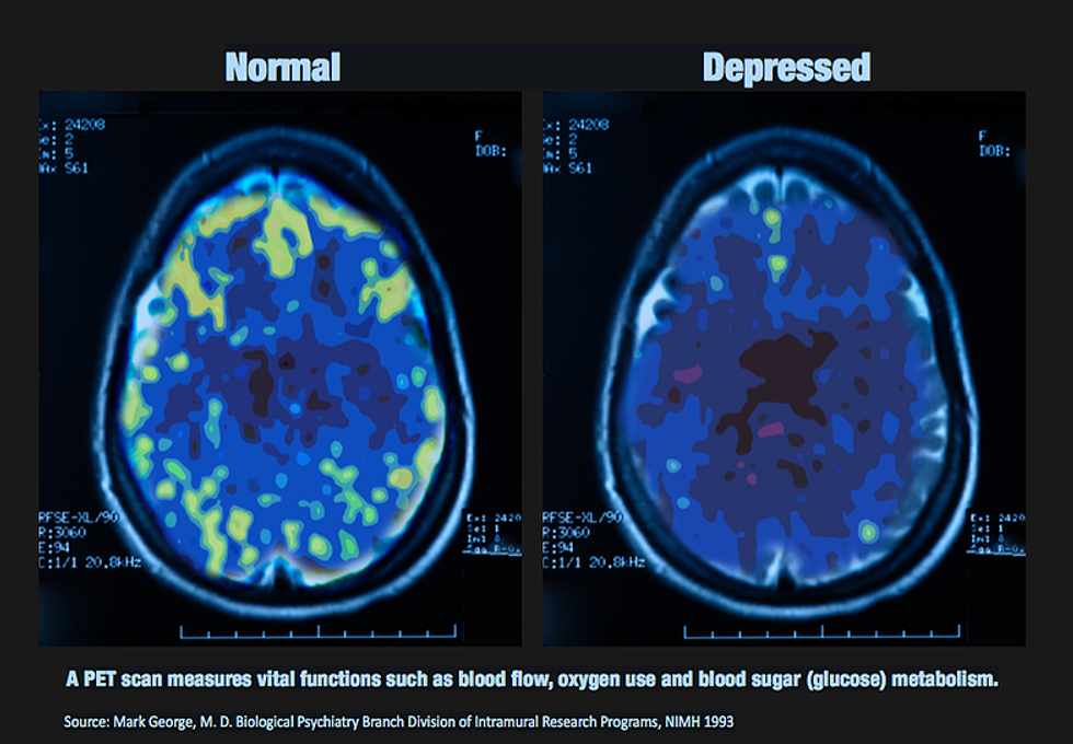 "Clinical Depression is often said to be caused by a chemical imbalance in the brain, and this is what most drug treatments are based on. Certainly in many cases, there is a reduction in the amount of certain neurotransmitters found (monoamines such as serotonin and norepinephrine) in depressed people"