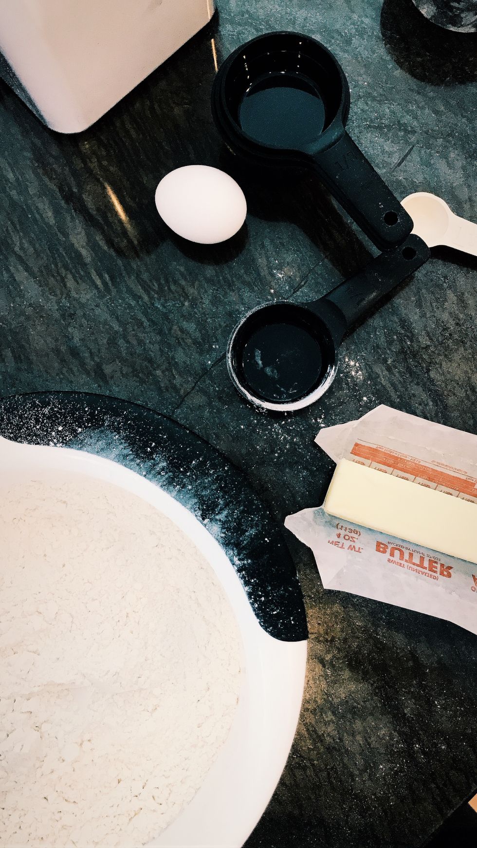 Step one: Combine the dry ingredients to form a floury and sugary mixture. Sifting the flour is a messy but necessary practice that ensures the finest grains for a silky smooth dough. Your bake will thank you later.