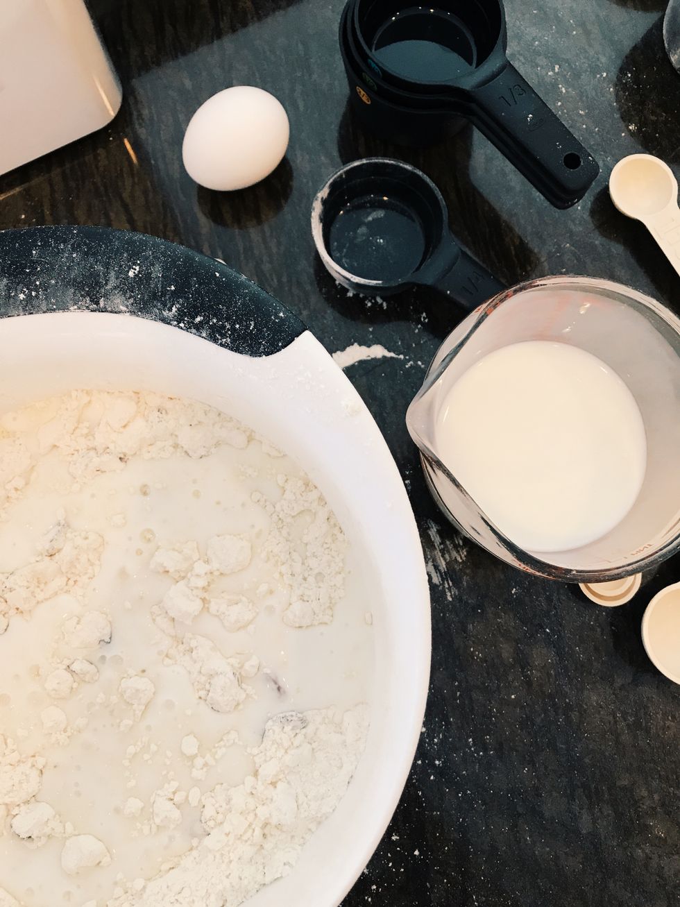 Step 4: Pour the buttermilk and a beaten egg over the batter to include some much-needed moisture. The buttermilk adds a pancake-like taste to the delectable dough. Beware of overmixing that destroys the leavening agents and prevents that perfect rise. Encourage your bread’s rising potential.
