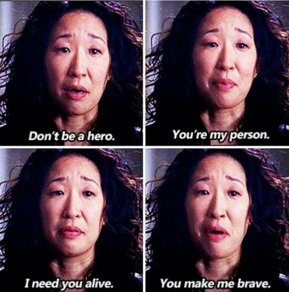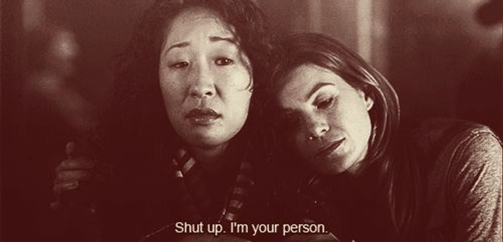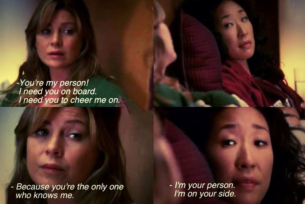 There are many more things that your person will do for you too, these are just a few of them. I think Meredith and Christina are a great example of this type of friendship because they are completely themselves around each other and know that the other person will always, always be there for them. Find someone that you are comfortable around and that makes you a better person. Someone that you want to be around and that wants to be around you, someone who will put just as much effort and time into the relationship or friendship as you will. Find someone who is going to be there in the big scheme of things. Don't give up if it takes some time to find your person because in the long run it will be worth it.