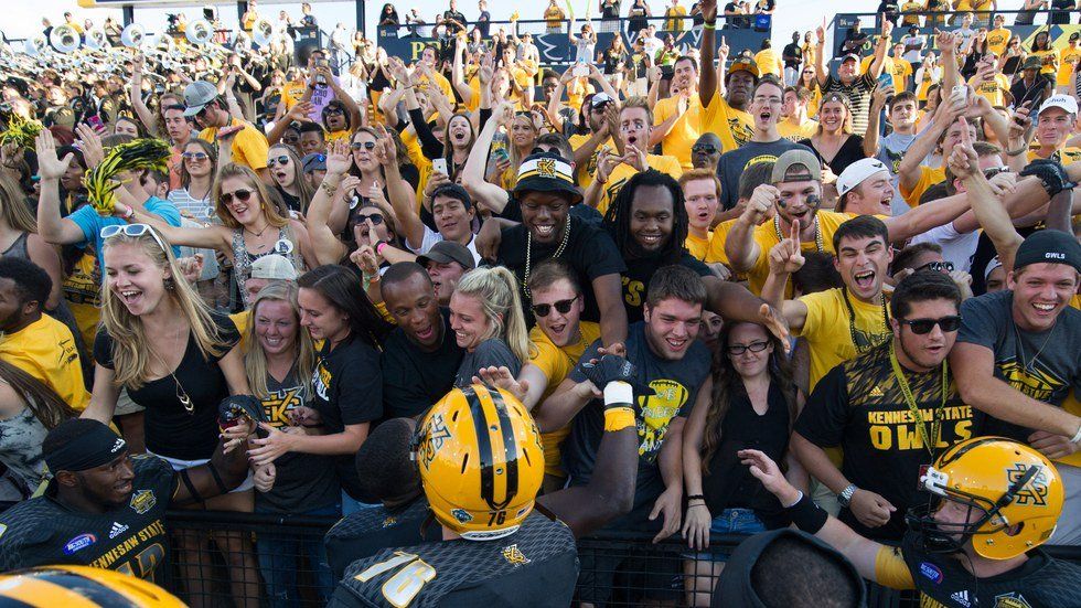 K for Kennesaw. S t-a-t-e. University. The infamous chant we all learned at our orientation. We all thought it was some stupid little thing but come football season not so much. Kennesaw is the big school with the small feel and it's great. You have maybe at twenty minute walk from the north side of campus all the way to the south side. You more than likely know more than 10 people so socializing is never awkward and meeting new people isn't that hard either. KSU has recently been in the news a lot lately some for good, and some maybe was not the best press, but nonetheless more people know who we are than ever. There are so many things that make our school unique, but here a few that for sure stick out.