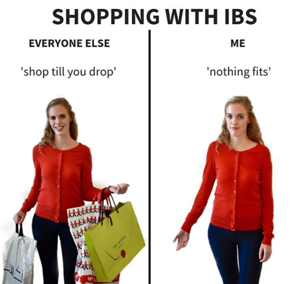 Bloating can get so bad with IBS to the point of going up a pant size or two. Bloating makes for very hard shopping as you possibly will need different size clothing for certain days.