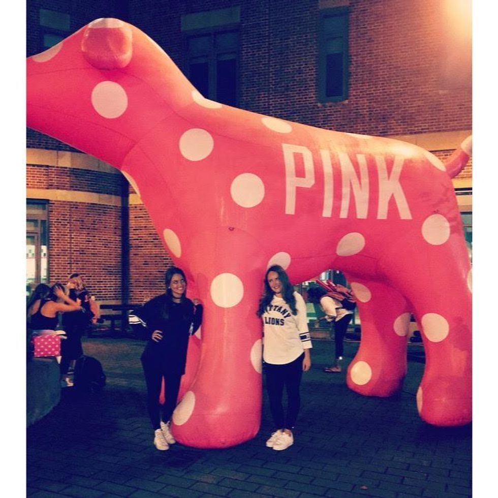 Halle: We set up a scavenger hunt on campus the day before [an] event and posted pictures of the PINK dog at popular locations on our Instagram. The first girl at each of the four locations won a free PINK gift card.
