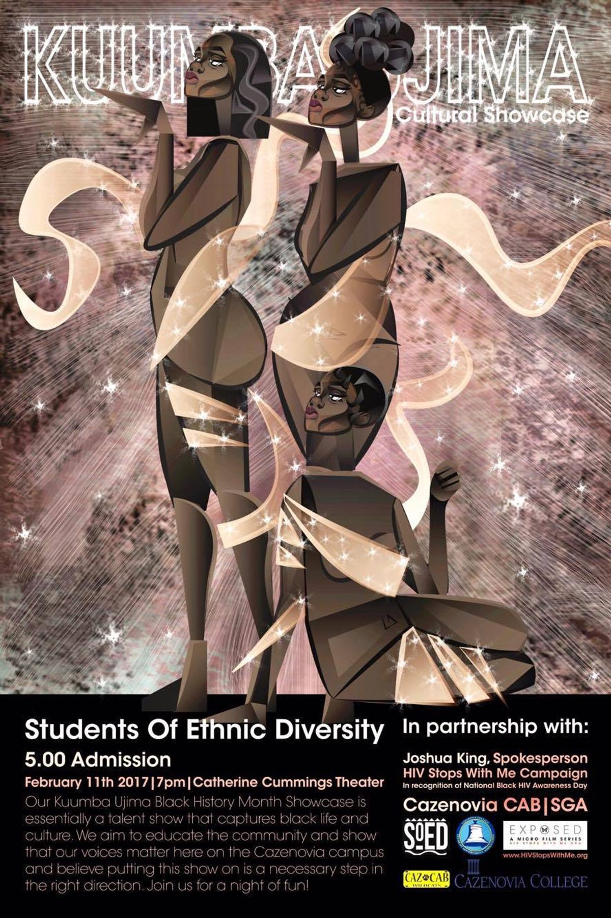 On Saturday, February 11th, I attended the Students of Every Diversity Club's Kuumba Ujima Black History Month Showcase held in the Cazenovia College Catherine Cummings Theater. Let me start by saying wow. Simply, wow. SoED did a fantastic job putting this showcase together.