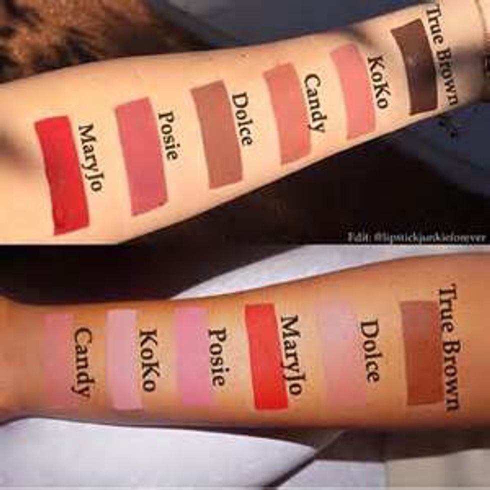 If you're into the original matte liquid lipsticks, there's: "Exposed" (neutral tan), "True Brown K" (dark brown) "Kourt K"(deep purple), "Candy K" (nude beige), "Dolce K" (dark nude), "KoKo K" (rose neutral), "Mary Jo K" (daed) and "22" (brighter orange-red). For those who love gloss: "Like" (brown nude), "Literally" (tanned neutral) and "So Cute" (peach nude) - and they're all about half the price of the originals at only $15. Her latest launch were for metals (metallic lipsticks at $18 each) which included: "King K" (bronze glitter), "Heir" (peachy-pink glitter), and "Reign" (terracotta/burgundy glitter).