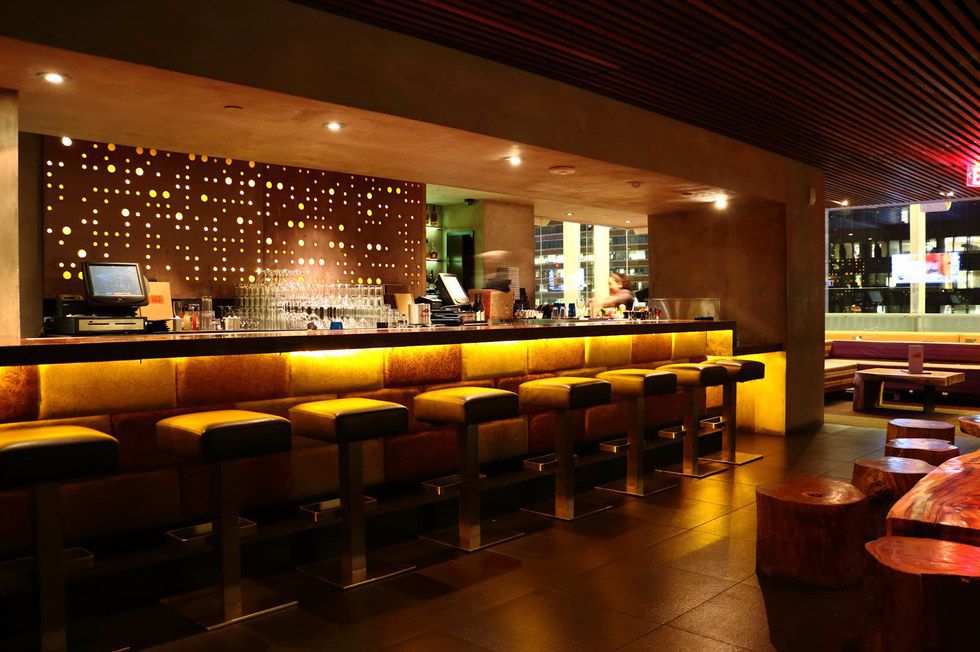 This was a group favorite. Mostly due to the music selection from the Dj and waterbed pods near the pool area. Upon entrance of the lobby, take the escalators where you're carded and take the elevator to go up (no cover on Thursday and Sunday). The space is accented with fluorescent orange lighting to balance out the earth tones utilized throughout the rest of the space. Super comfy seating can turn a wild night into an intimate one on one.