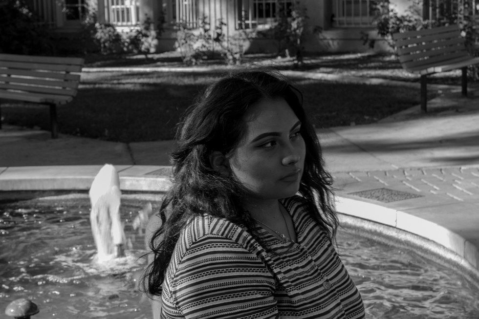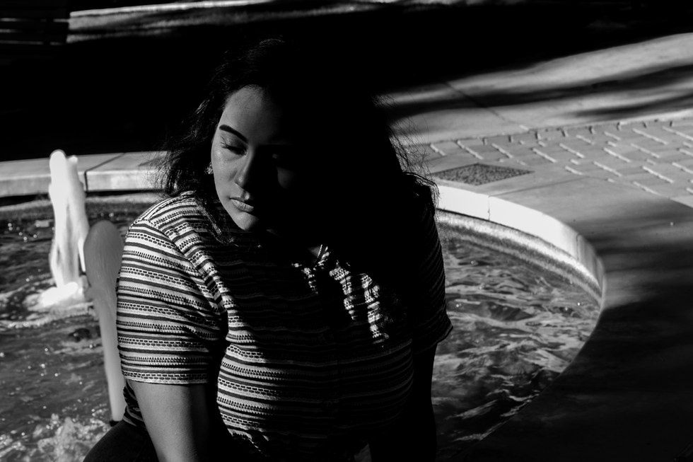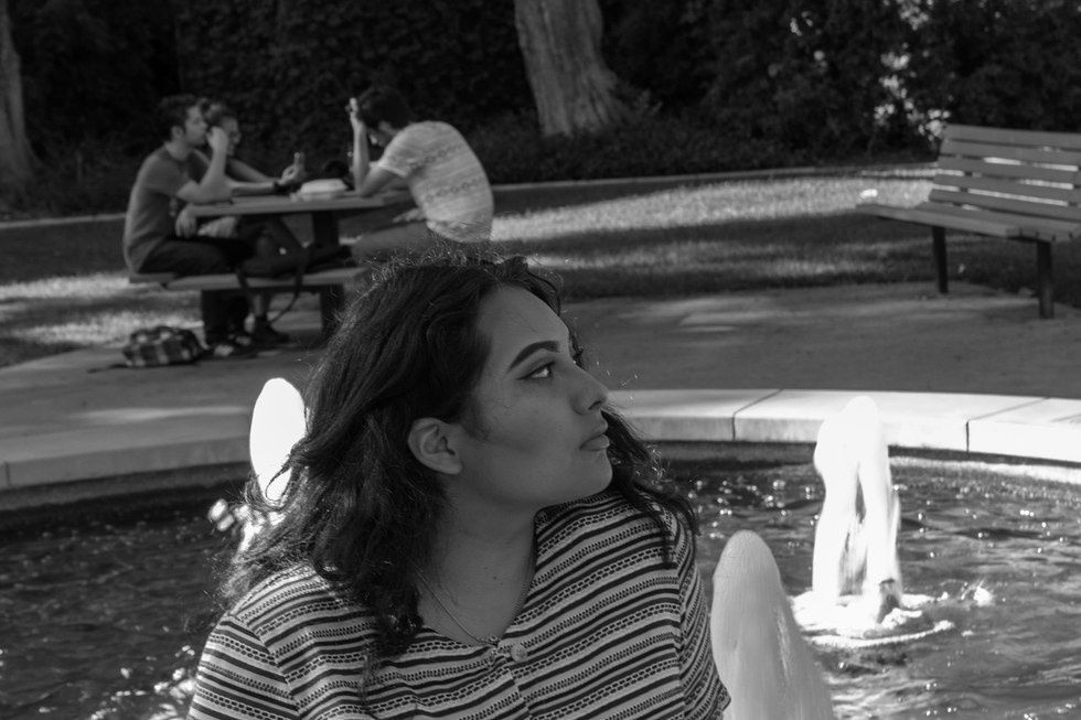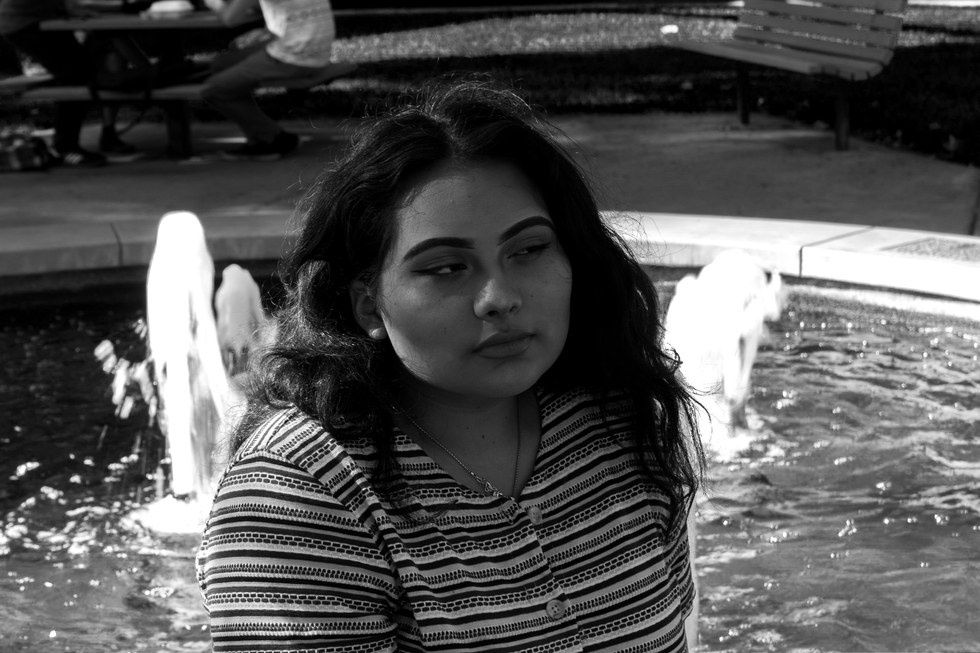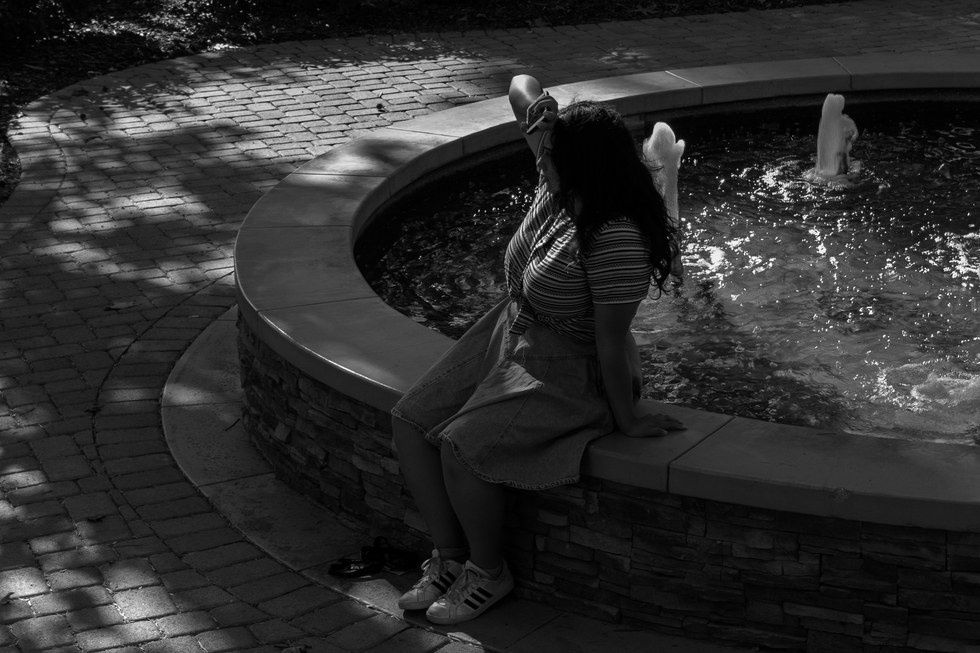 The sound of the water flowing from the water also supported the mood of the overall occasion, and it even seemed to ease Julie into modeling. It also saved me from rendering with my camera for a new setting and mode on the camera because the shade of the fountain supported the authentic feeling of the photographs that were being taken.