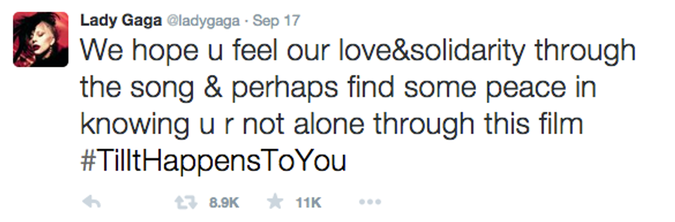 We all know Lady Gaga as a woman who isn’t afraid to do things out of the ordinary. Her actions, as well as her ridiculous outfits, over the past few years have been more than enough to make a few headlines. The release of her new music video, "Till It Happens To You," has certainly made a few headlines of its own. Gaga teamed up with the makers of the documentary, "The Hunting Ground," to make a video that connects with an audience who have suffered due to sexual assault. The video begins with a disclaimer about the graphic and emotionally upsetting scenes and progresses from there. Throughout the video we see scenes of men putting date rape drugs into plenty of drinks that girls are holding, we see rape, and we see how these disgusting actions take a toll on the victims. The video portrays the victims suffering through self-doubt, feelings of worthlessness, and isolation. However, the end of the video does shine some light on the victims and depicts the them surrounded by love and support of their friends and family, encouraging them to live life and become strong again.