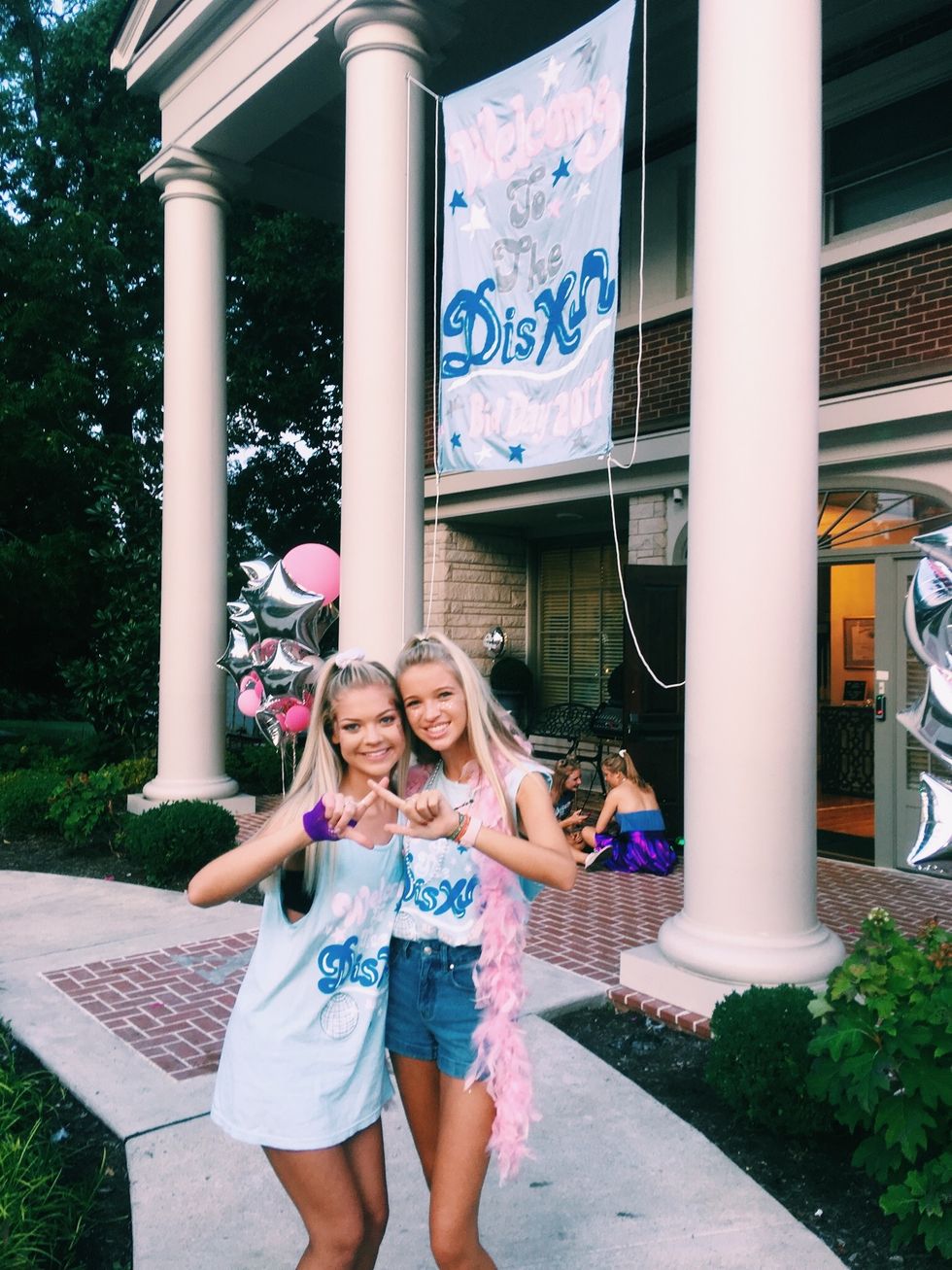 "My favorite party of bid day was literally sprinting to the Chee and being greeted by my soon to be big, Cameron. Being greeted with such excitement and feeling so welcomed was probably one of the best feelings in the world. Being surrounded by such an awesome group of diverse girls who were all somehow just like me was also just as amazing. Clicking instantly with my future bffs (and roomies), CB and Madison, helped me cherish bid day and my college experience so much more."