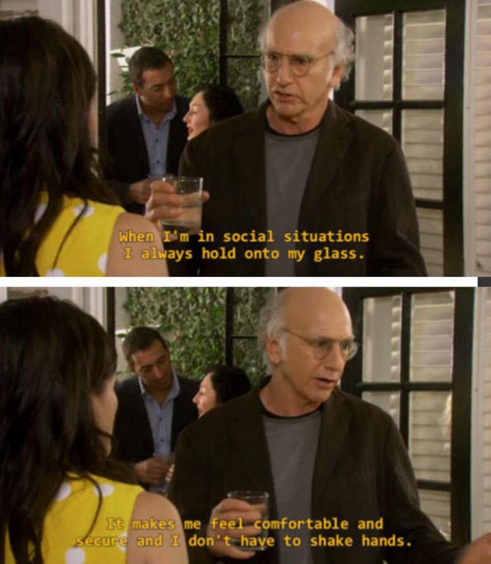 Larry understand the security of being able to hold onto something while going out. All of our social anxiety friends out there will relate to this one.