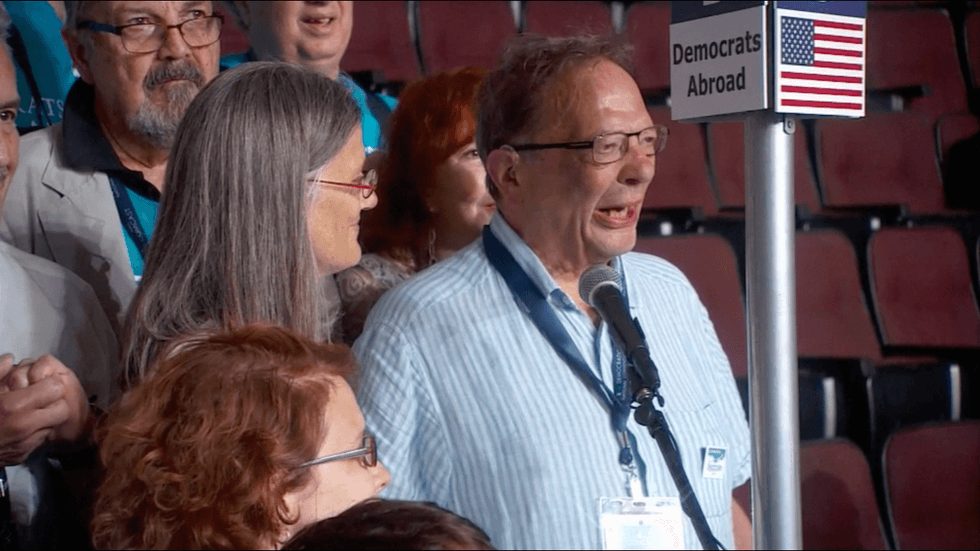 Larry Sanders, the older brother of former Democratic candidate Bernie Sanders, was a delegate for Democrats Abroad due to his residence in the United Kingdom. The delegation initially voted seven for Hillary Clinton, and nine for Bernie Sanders. However, the 17th vote was presented by Larry in an emotional testimony.