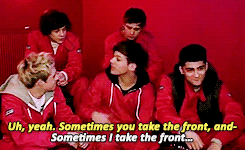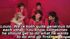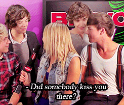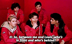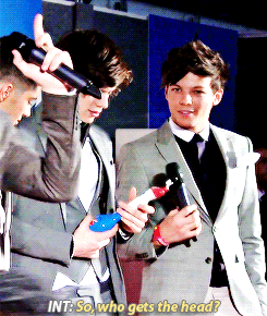 The interviewer asked "Who usually is in front and who usually goes behind when you're playing Mario Kart?" Look at Louis' smug face realizing he can make this sexual.