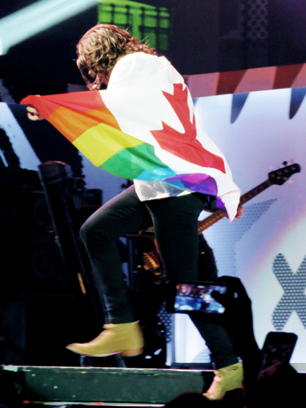 All throughout One Direction's latest tour, Harry has picked up every rainbow flag people have thrown on stage and run with it.