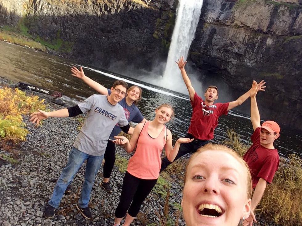 We climbed into our cars and drove the two hours out to Palouse Falls in southeastern Washington. It took us a while to wake up, but eventually we were singing along to the radio at the top of our lungs, as any road trip goes, naturally. We drove through the rolling brown and green fields dotted with the occasional tree or farmhouse. The sky was a bright, clear blue, something we hadn't seen in a while, and the few clouds looked unrealistically white and fluffy, like they were out of a painting.