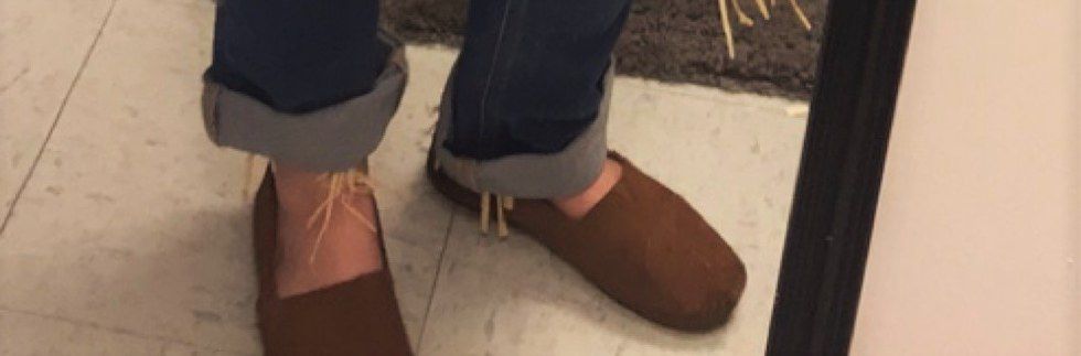 2. Get the extra pieces of straw that you set aside earlier. You will use these to tape to the inside of the gaps between buttons and bottom of your sleeves on your plaid shirt. (I would do this after you already have the shirt on. Also, I recommend wearing a tank top or under shirt, so that the straw does not scratch your skin.)