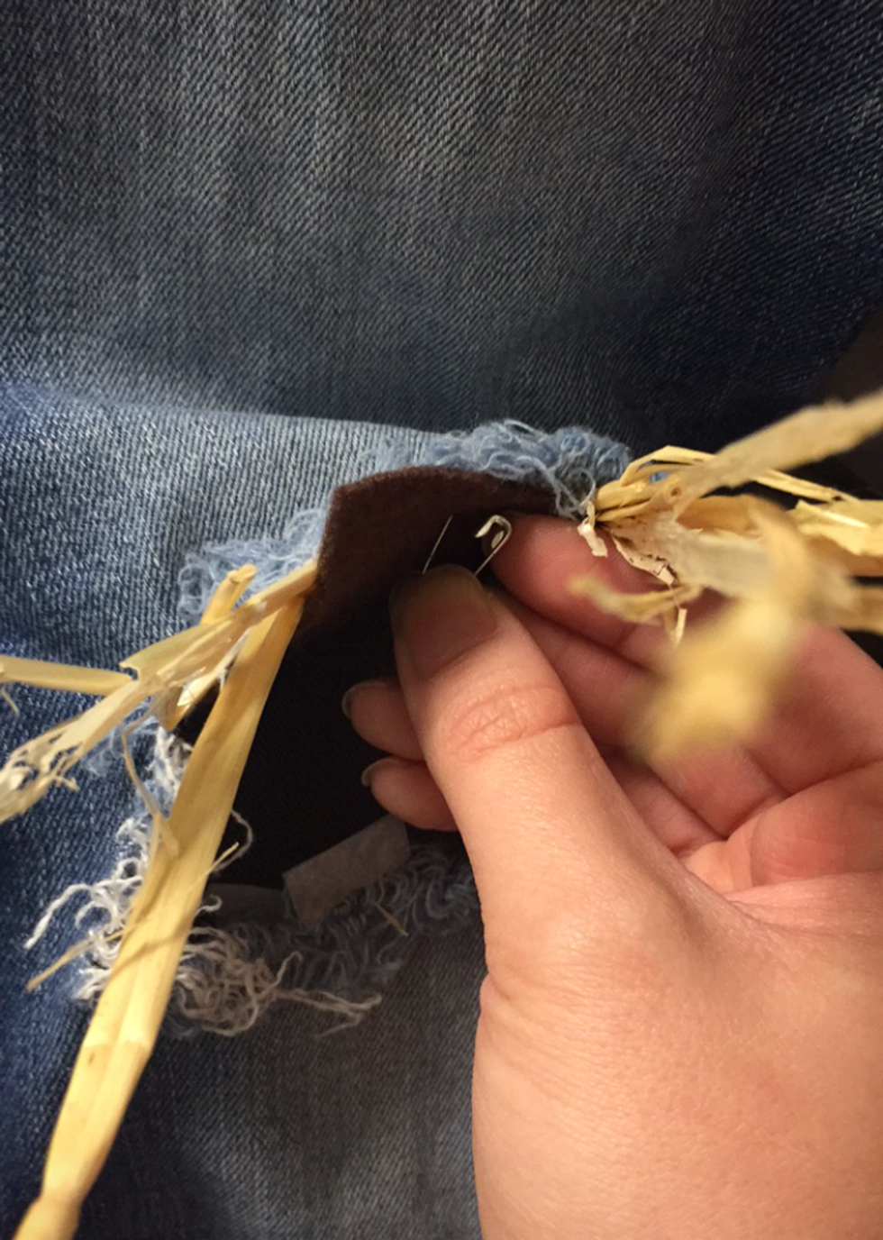 2. Tape medium-long length pieces of straw to a small square of felt. (small enough to fit behind the hole in your jeans)