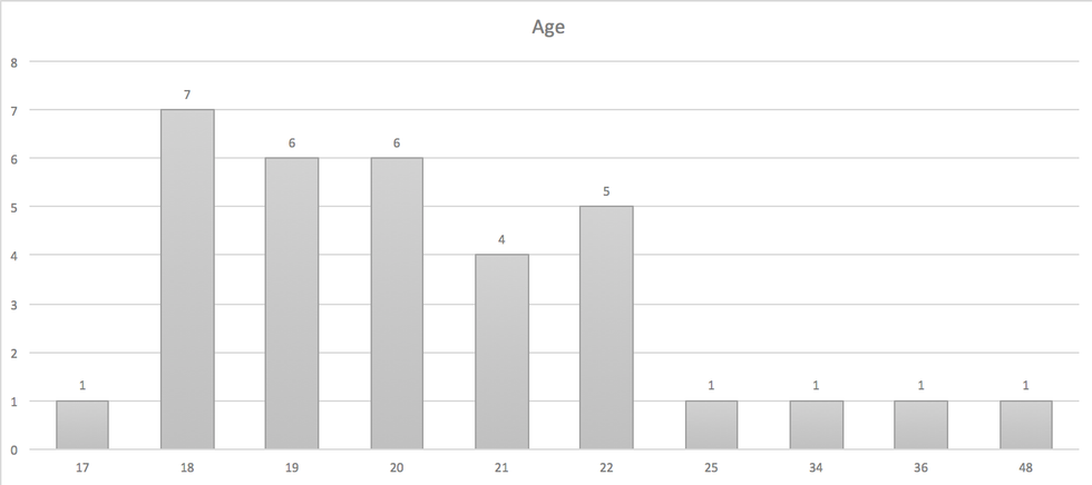 *The 33 responses does not include my own, so really seven 19-year olds responded and 76.4% of 34 responses are female, and 23.6% are male