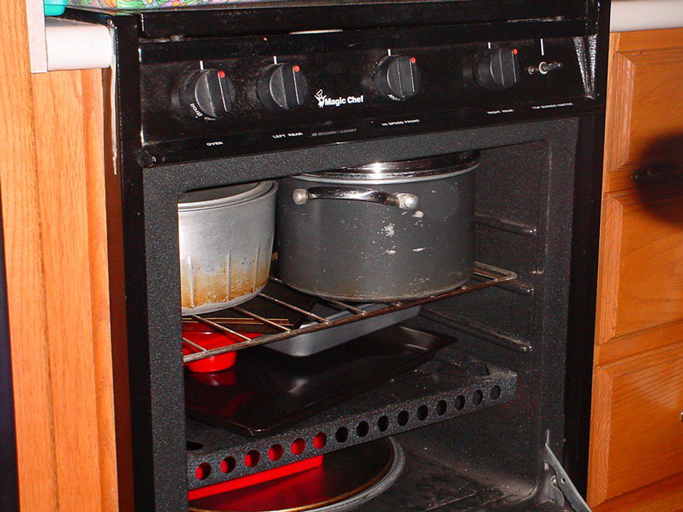 Let's start with the stove, commonly used for cooking pernil, it also has the tendency to offer storage after hours. If you keep your stub, you get to stay for the after party of pots and pans of oil.