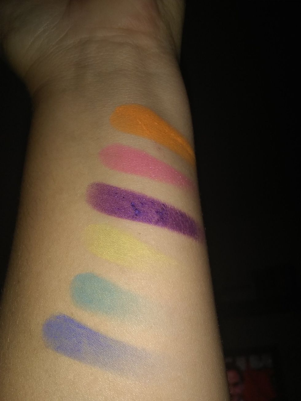 Then there was a thing with her makeup palette. If you were subscribed to the Boxycharm box, you got her new party animal palette. Look at how Laura portrays her colors versus how the colors actually are: